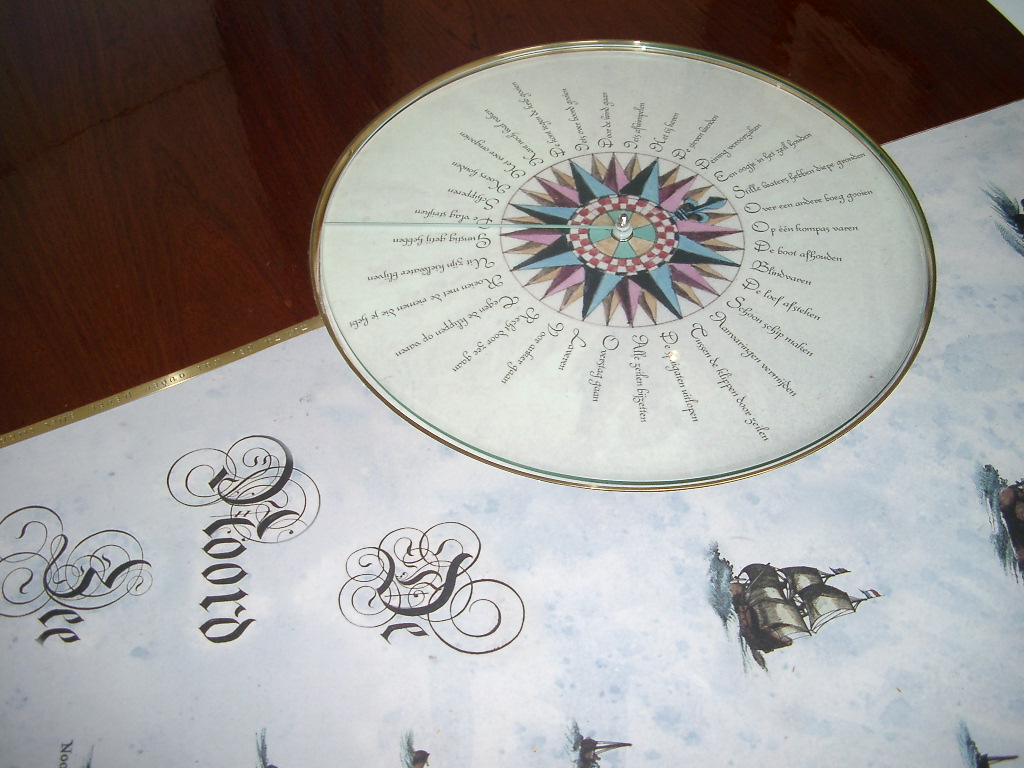 De tafel bevat een kompas in het midden die een vergadering de juiste richting kan wijzen. Het kompas heeft een draaibare wijzer, zodat net als bij het kinderspel PimPamPet de wijzer van het kompas een nieuwe koers aanwijst. Het kompas heeft 32 streken. bijvoorbeeld: